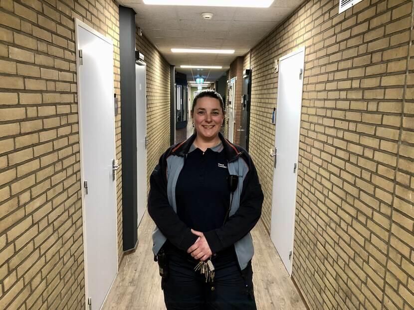''Als senior complexbeveiliger heb je net wat meer extra taken en verantwoordelijkheden. Leuk om te benoemen is dat ik de enige vrouwelijke senior complexbeveiliger ben binnen deze inrichting. Er werken best een aantal vrouwen binnen ons team, ondanks dat de beveiligingswereld over het algemeen wel wordt gezien als een mannenwereld. Zelf heb ik dit nooit als een probleem ervaren. Ik vind het prettig om zowel met mannen als met vrouwen te werken. Vrouwen kijken toch met een andere blik naar dingen, dat zorgt voor een goede balans. We doen zeker niet onder voor de man, iedereen wordt op dezelfde manier geschoold om alles volgens dezelfde procedure uit te voeren. Daarnaast kunnen vrouwen tegenwoordig echt wel hun mannetje staan, vooral de vrouwen die hier werken. Je bent je er toch bewust van dat je met een serieuze doelgroep werkt. Ik voel me goed op mijn plek binnen het team.''
